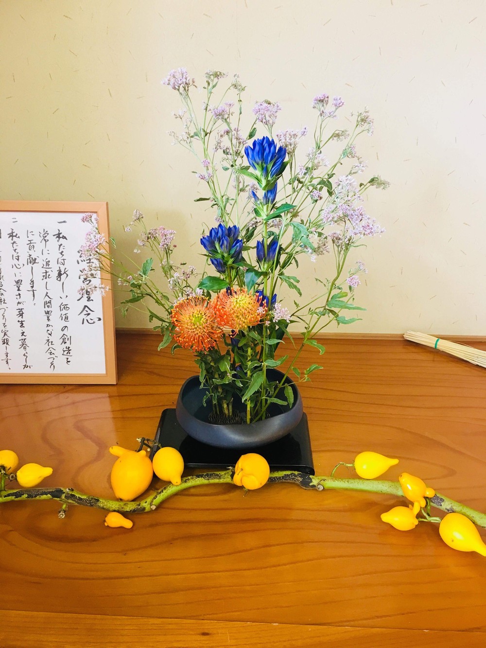 そして、床の間にちょっとだけ秋を感じて頂きたくてお花を飾って見ました(≧∀≦) ハーバリウム も夏バージョンから秋向け商品に変えていきますね☆ これは特注のハーバリウムです! 素敵に仕上がりました。