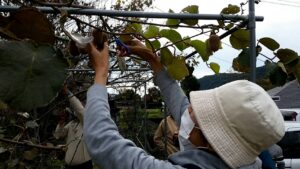 本日は曇り空の中ですが、キウイの収穫をしました。
