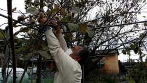 本日は曇り空の中ですが、キウイの収穫をしました。