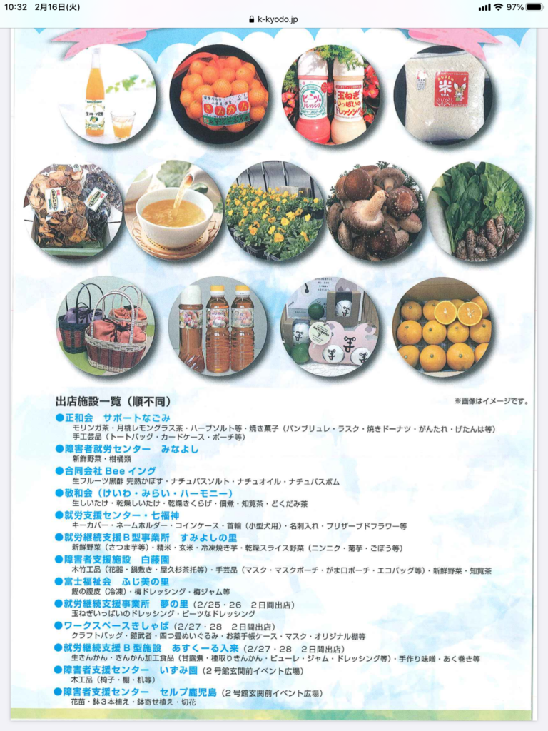 障害者の自立と社会参加を目指すために、就労支援事業所で生産、製造された製品の販売をするイベントです☺︎